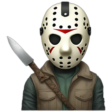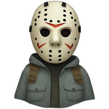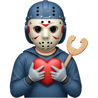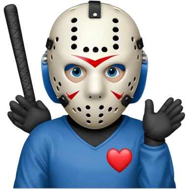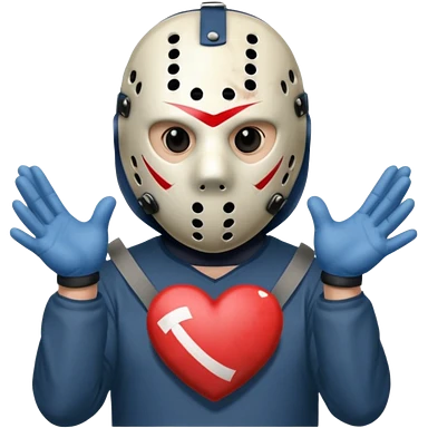 Jason Voorhees, looking cute, making a heart with his hands emoji | AI Emoji Generator
