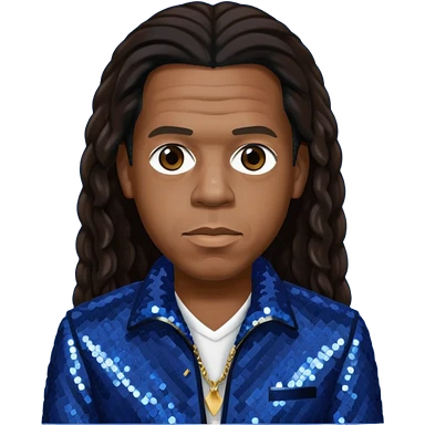 Jay-Z with long dark brown hair, dark blue sequin outfit emoji