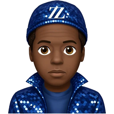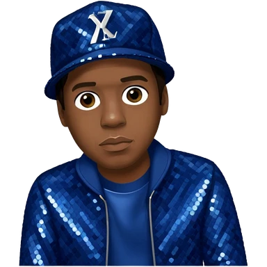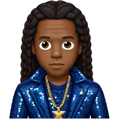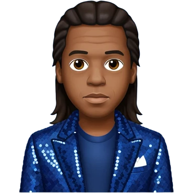 Jay-Z with dark brown hair, dark blue sequin outfit emoji
