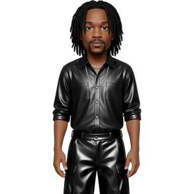 Jay-Z with black hair, black metallic shirt, black metallic baggy pants, silver necklace emoji