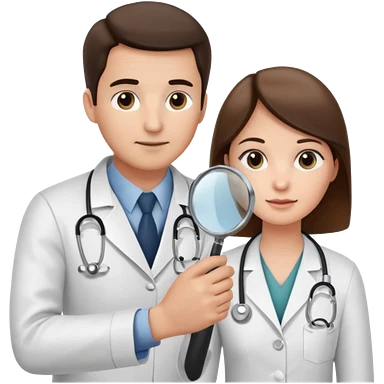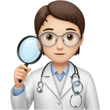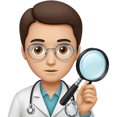 medico olhando a pele do braço de um paciente com uma lupa emoji