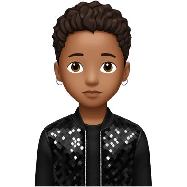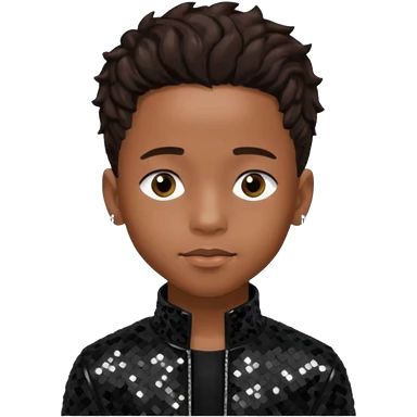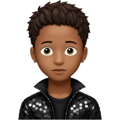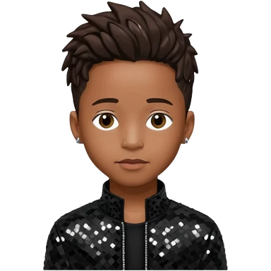 Jaden Smith with dark brown hair, black sequin outfit emoji