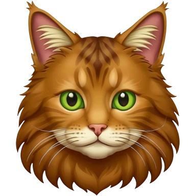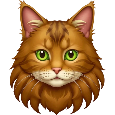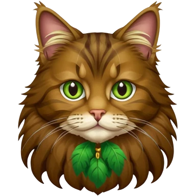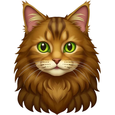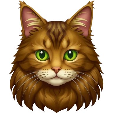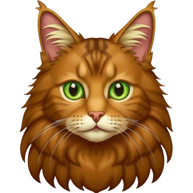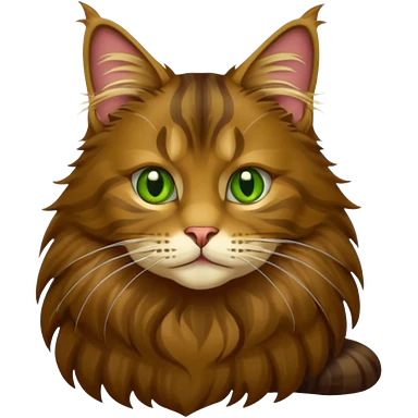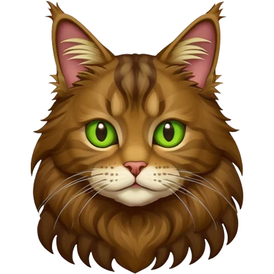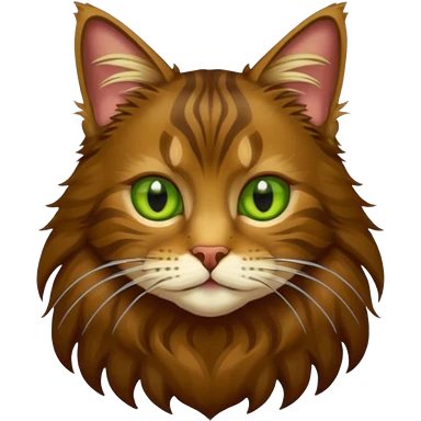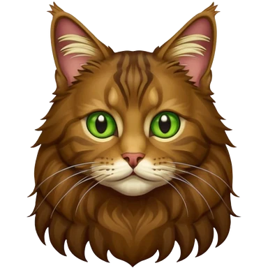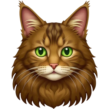 je veux un emoji chat main coon marron à poil long avec les yeux vert jaunes emoji | AI Emoji Generator