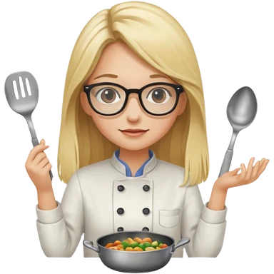 je voudrai un emoji d'une fille aux cheveux longs et blonds avec des lunettes entrain de cuisiner emoji