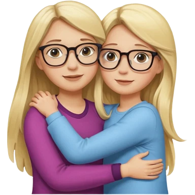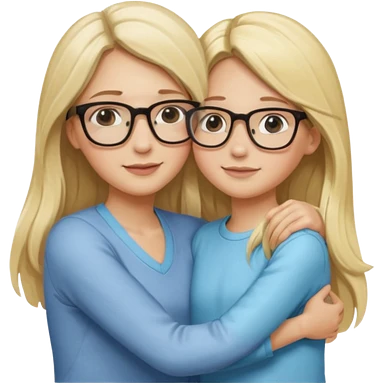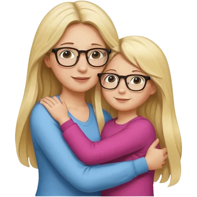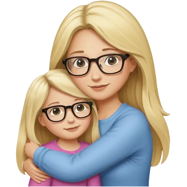je voudrai un emoji d'une maman blonde avec des lunettes et de sa fille aux cheveux longs et blonds avec des lunettes qui fond un calin, les 2 ont les cheveux longs emoji