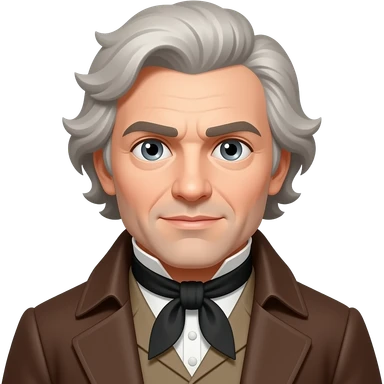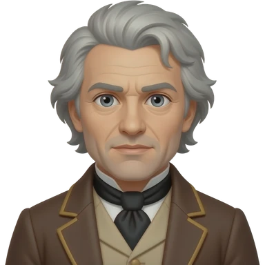 Jean Valjean from Les Mis with grey eyes, light grey hair, brown tailcoat emoji
