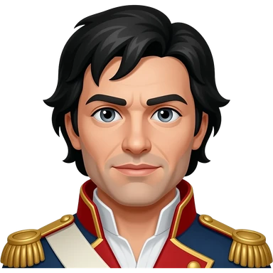 Jean Valjean from Les Mis with gray eyes, black hair, red metallic toulon emoji