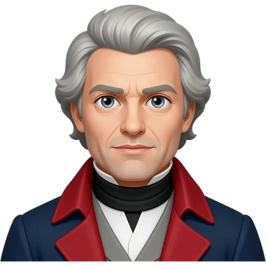 Jean Valjean from Les Mis with gray eyes, light gray hair, red and dark blue overcoat with high collar emoji