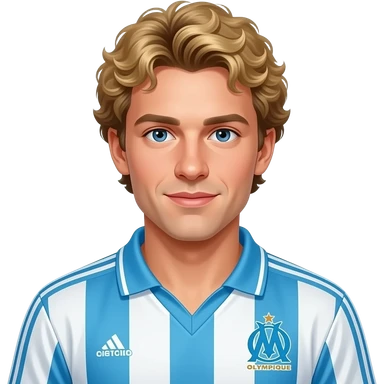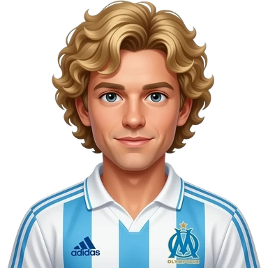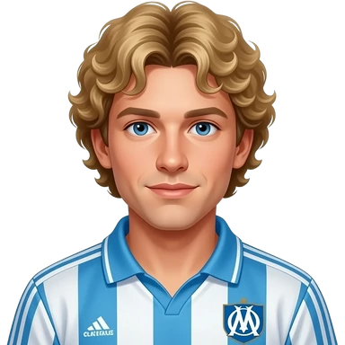 young Jean-Pierre Papin blond curly short hair, vintage 90 olympique de marseille soccer jersey emoji
