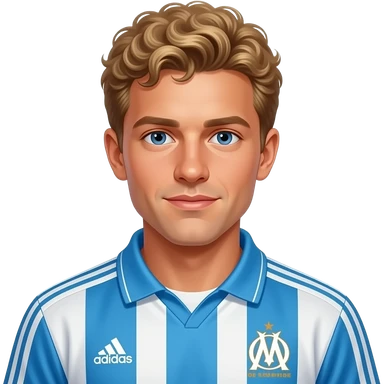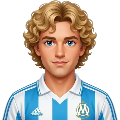 young Jean-Pierre Papin light blond curly short hair, vintage 90 olympique de marseille soccer jersey emoji