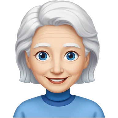 abuela con ojos azules, pelo blanco, pelo blanco y amarrado, aspecto feliz emoji