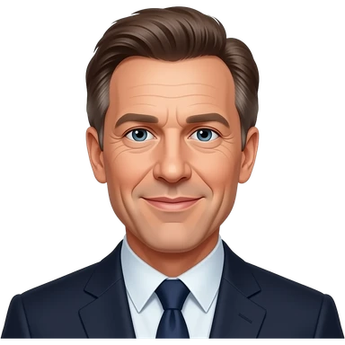Jeffery Epstein with dark blue jacket and red logo emoji