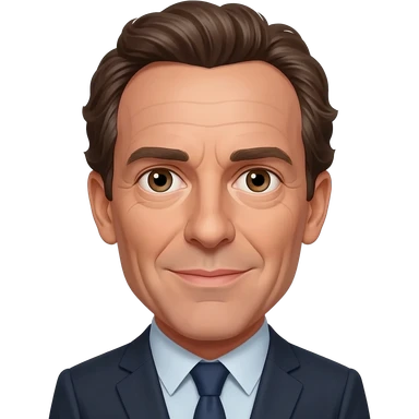 Jeffery Epstein with dark blue jacket and red logo emoji