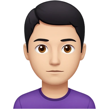 Jeff Fatt black hair, brown eyes, purple shirt emoji