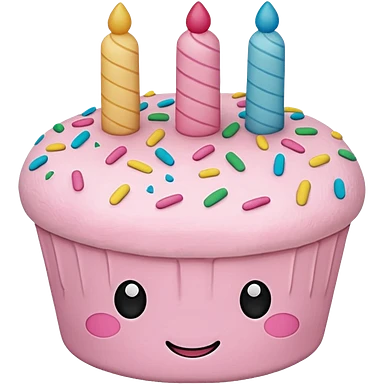 Jellycat vanilla cake with white frostting and strawberries on top with one candle with smiley face emoji | AI Emoji Generator