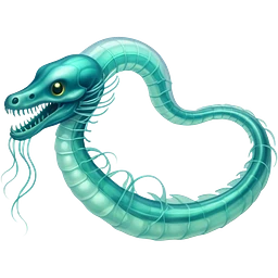 A phosphorescent deep-sea serpent with translucent scales that reveal its glowing skeleton, possessing both jellyfish-like tendrils and the ability to generate electrical pulses that illuminate the ocean depths. emoji