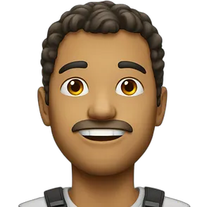 jongen bruin haar zwarte schoenen lichtblauwe baggy broek groene trui zwarte zonnenbril emoji