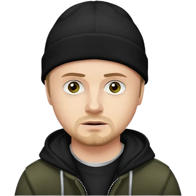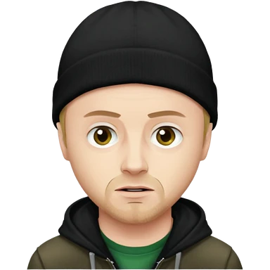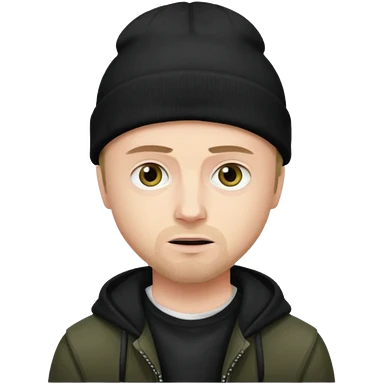 Jesse Pinkman from Breaking Bad, challenging expression, wearing a beanie, light beard, simple background emoji