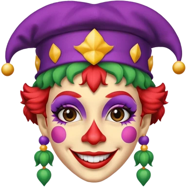 jester in colorful costume, playful and cheerful, Puy du Fou theme park emoji emoji