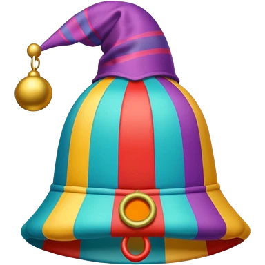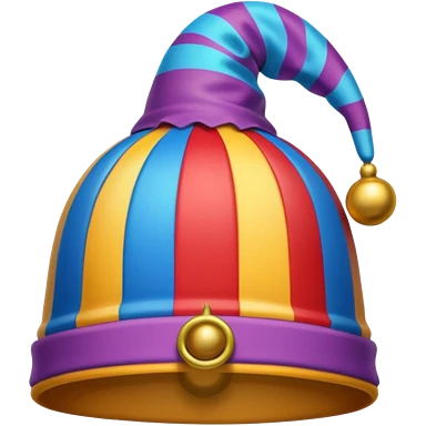 A 3D cartoon jester hat in red, blue, and green with bells, simple light background, Memoji-style rendering. emoji