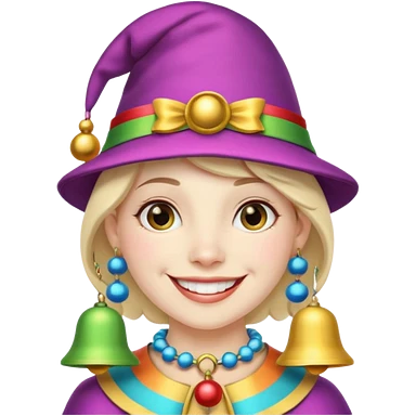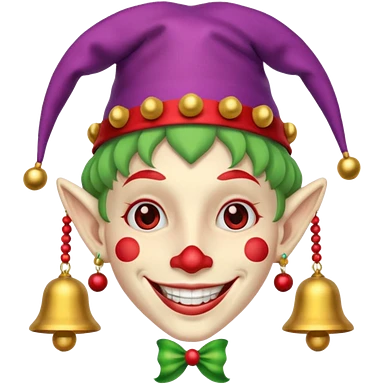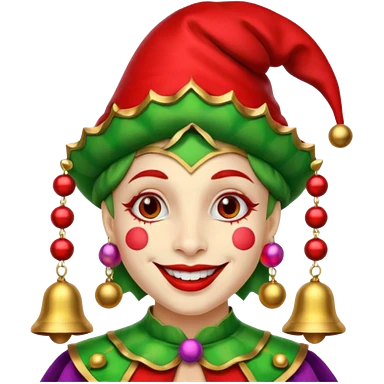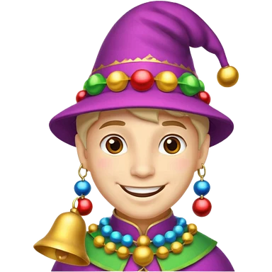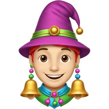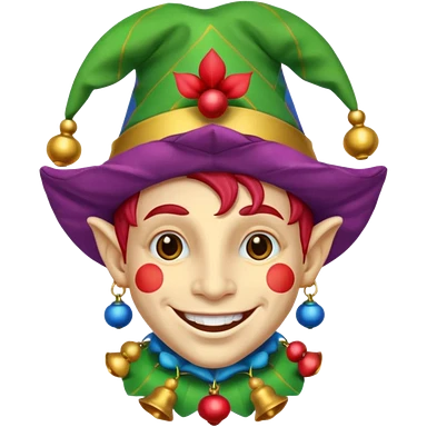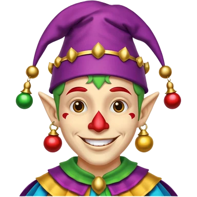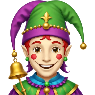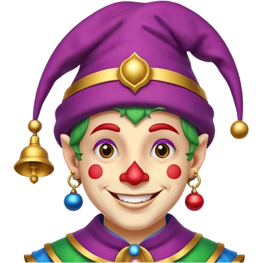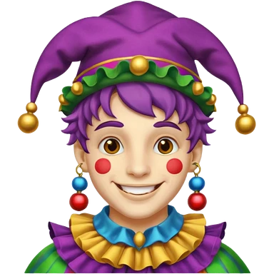 Jester – Smiling trickster with colorful hat and bells emoji | AI Emoji Generator