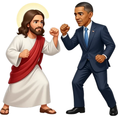 jesus having a fistfight with barack Obama emoji