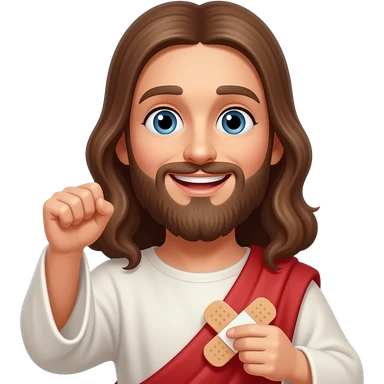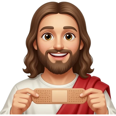 Jesus holding a big bandaid with a smile on his face emoji
