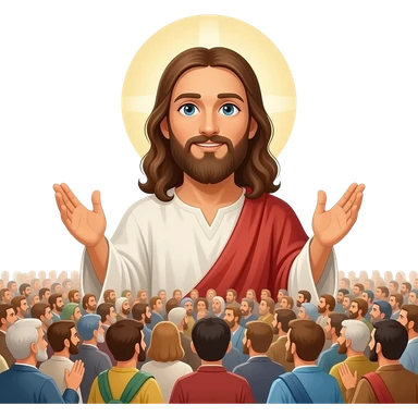 Jesus preaching to thousands of people emoji
