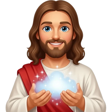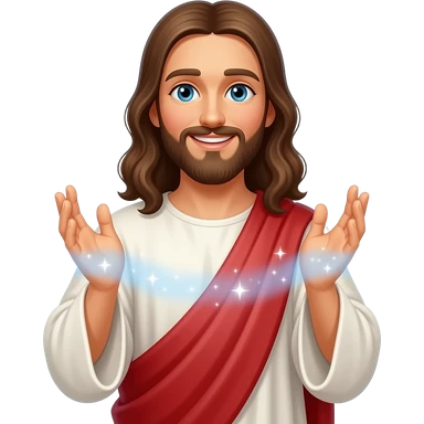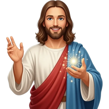 Jesus performing miracles with a smile on his face emoji