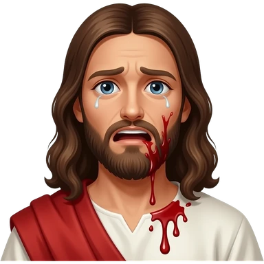 Jesus having a panic attack and sweating blood with a scared look on his face emoji