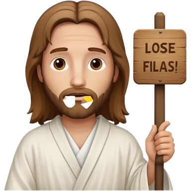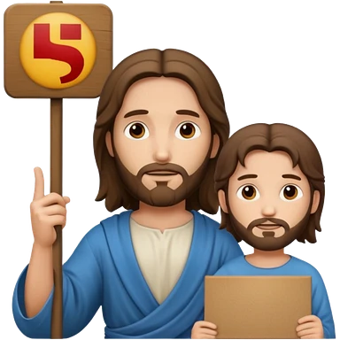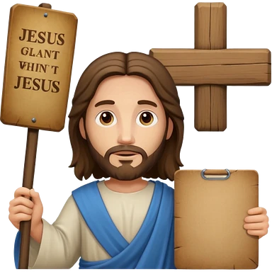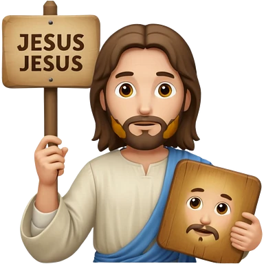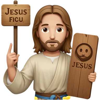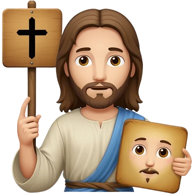 Jésus avec une pancarte dans ses mains dans ses mains emoji | AI Emoji Generator