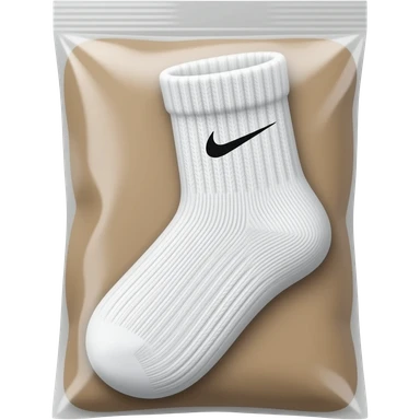 Vacuum sealed white Nike sock close-up, ribbed texture, blurred wood. emoji