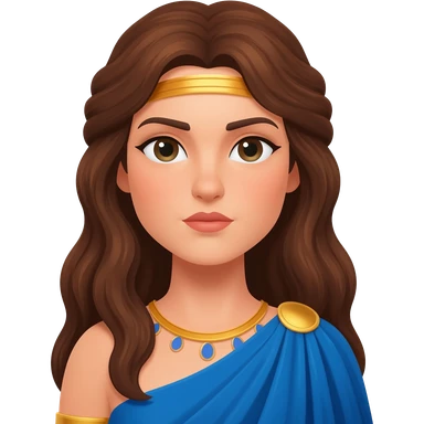 Hera from Greek Mythology with long brown hair, blue outfit emoji