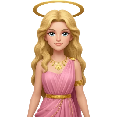 Aphrodite from Greek Mythology with long blonde hair, pink outfit emoji