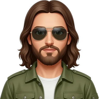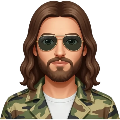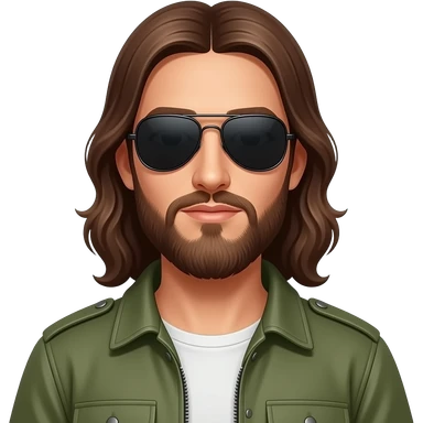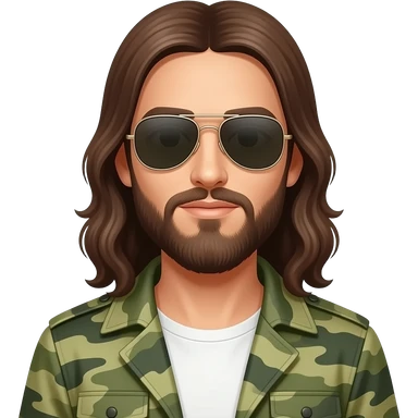 Jesus Christ wearing Ray-Ban aviator and army jacket emoji | AI Emoji Generator