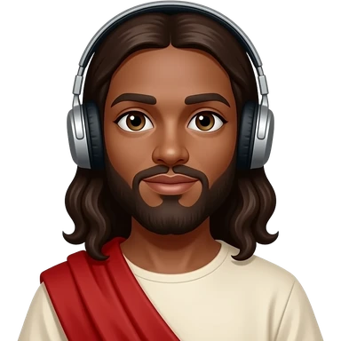 African American Jesus Christ wearing tunic and headphones emoji