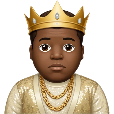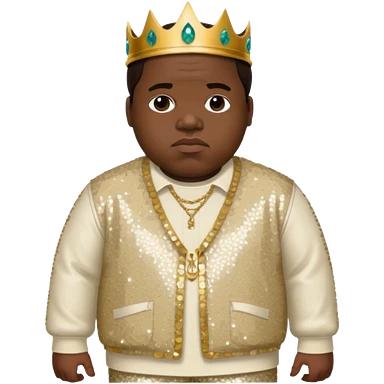 Biggie Smalls with dark brown hair, ivory sequin outfit emoji