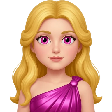 Aprodite from Greek Mythology with pink eyes, long golden blonde hair, hot pink metallic peplos emoji