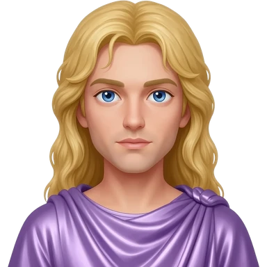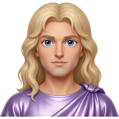Zeus from Greek Mythology with blue eyes, long blonde hair, lilac metallic toga, silver necklace emoji