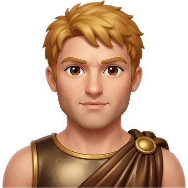 Heracles from Greek Mythology with dark brown eyes, reddish blonde hair, brown metallic toga emoji