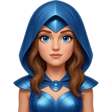 Juno from Roman Mythology with blue eyes, long brown hair, blue metallic cowl dress emoji