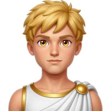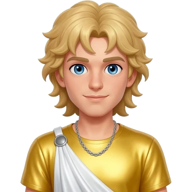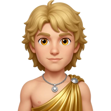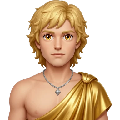 Apollo from Greek Mythology with amber eyes, long blonde hair, gold metallic toga, silver necklace emoji