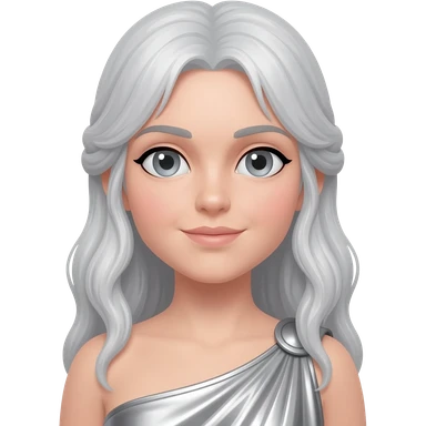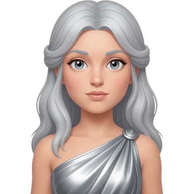 Artemis from Greek Mythology with grey eyes, long silver hair, silver metallic peplos emoji