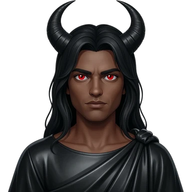 Satan from Christian Mythology with red eyes, long black hair, black metallic toga emoji