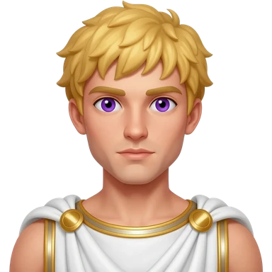Adonis from Greek Mythology with purple eyes, golden blonde hair, white and gold metallic toga emoji