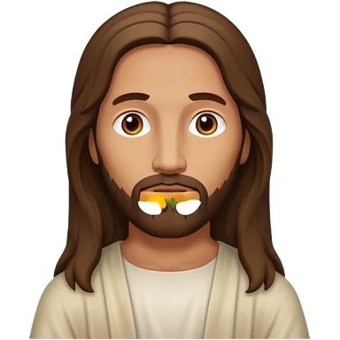Crucified Liam Gallagher in the style of Jesus full body on cross in mid clothing emoji
