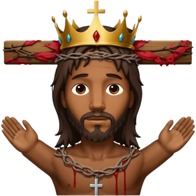 African American Jesus Christ bleeding on wooden cross with crown of thorns on his head emoji