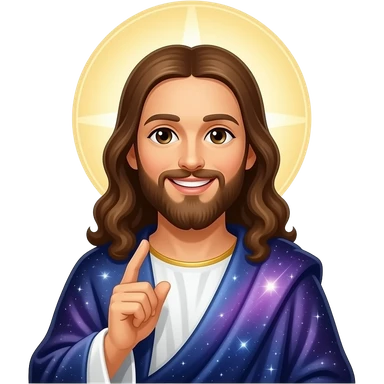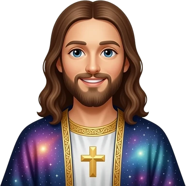Jesus in a cosmic robe and halo emoji | AI Emoji Generator