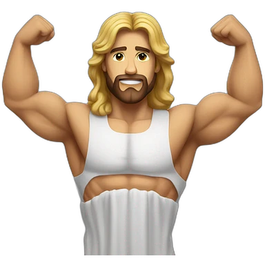 Flexing muscle arm with rising chart, bold minimal style, white background emoji