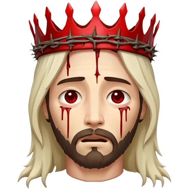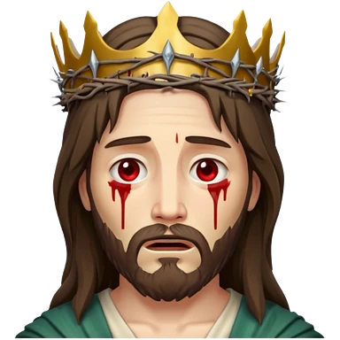 Minimalist emoji of Jesus on the cross, gentle and peaceful face, subtle wounds, simple wooden cross, soft muted colors, reverent and spiritual, serene and respectful, not exaggerated, sacred icon style emoji